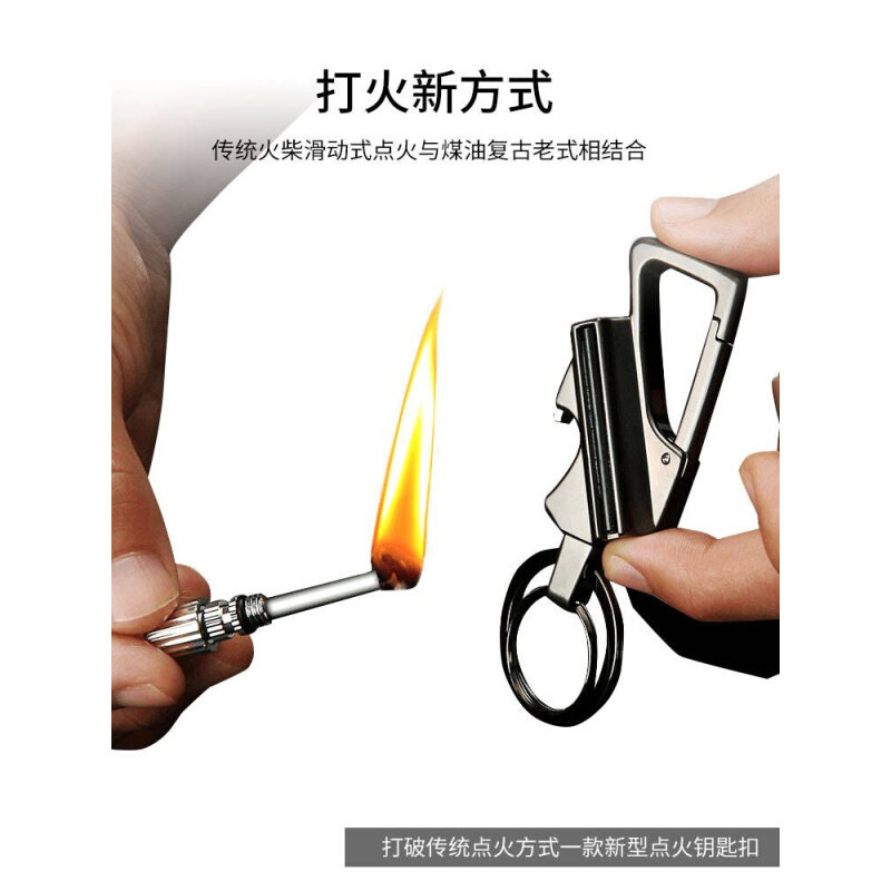百诚钥匙扣煤油万次火柴户外多功能带照明灯男士腰挂汽车金属挂件