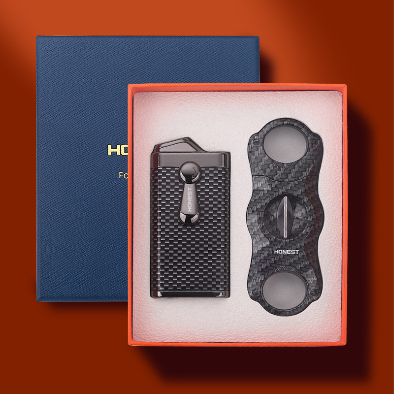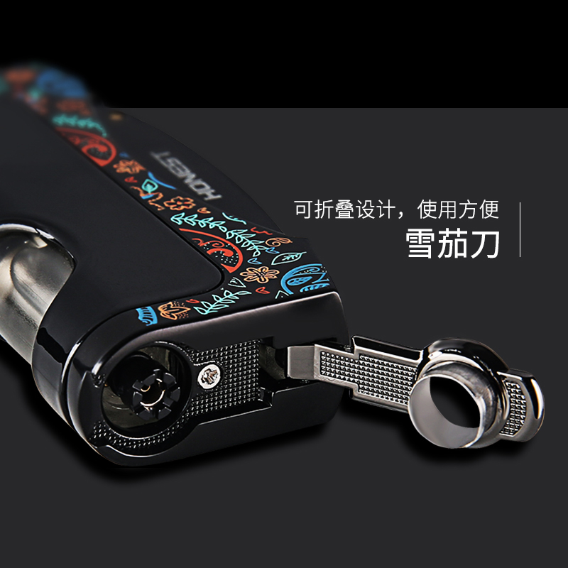honest百诚2024金属雪茄剪专用充气直冲打火机套装高端艾灸点火器