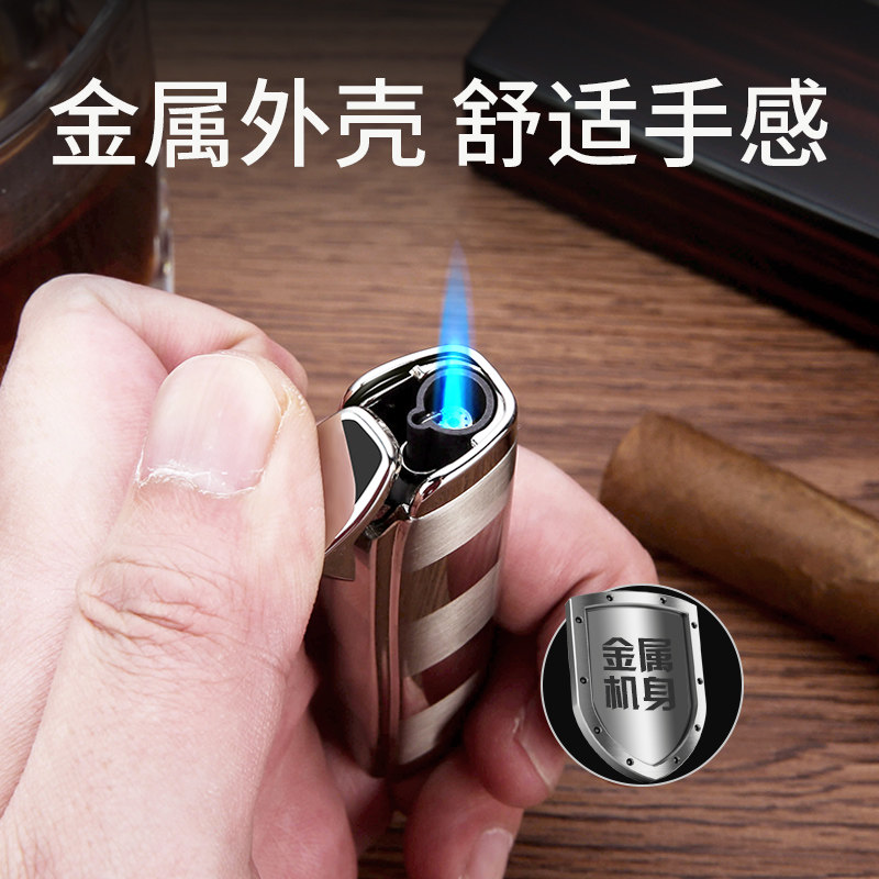百诚雪茄打火机防风创意个性潮气体充气打火机蓝焰直冲金属点烟器