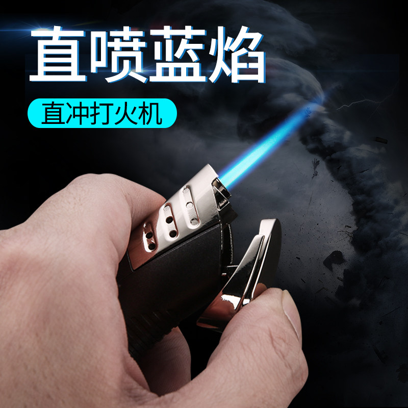 百诚防风火机耐用创意个性潮充气直冲雪茄火机点艾灸专用蓝焰
