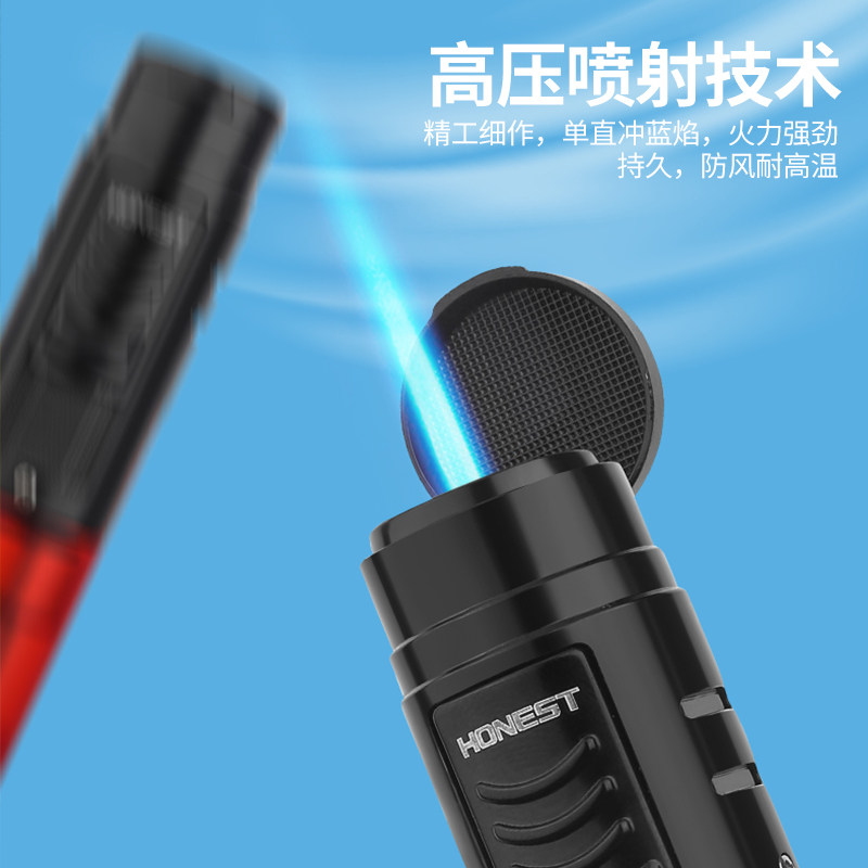 正品HONEST百诚新品充气防风打火机直冲点雪茄专用喷枪野外火具