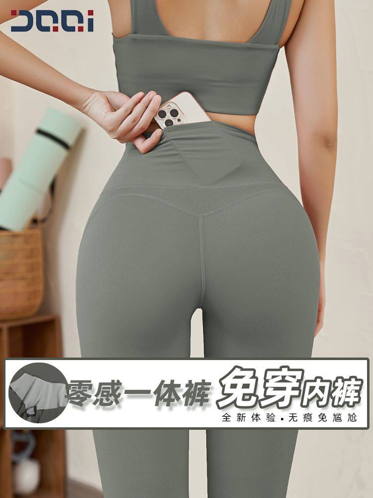 的确奇免穿内裤抗菌裆无痕一片式瑜伽裤女蜜桃提臀紧身运动健身裤