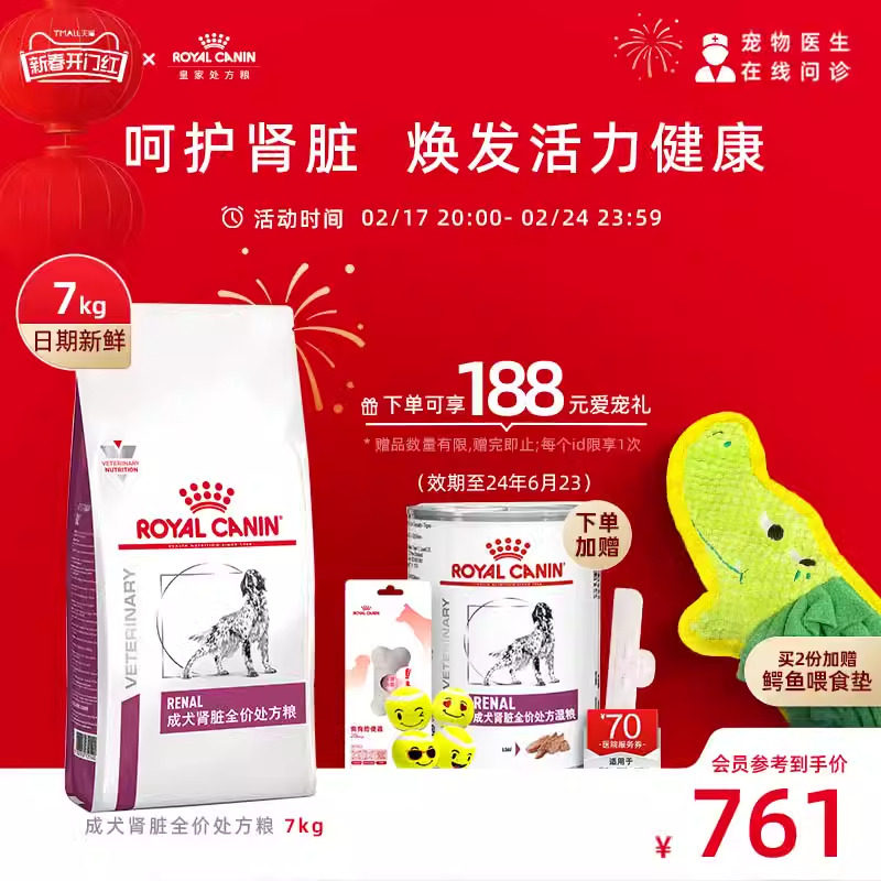 皇家狗粮RF14缓解犬慢性肾衰竭肾脏疾病慢性肾炎2KG犬肾脏处方粮