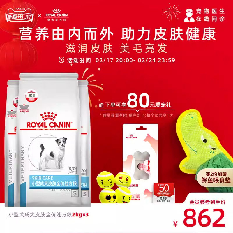 【顺丰发货】 皇家狗粮小型犬成犬皮肤处方粮SKS25皮肤调理2KG*3