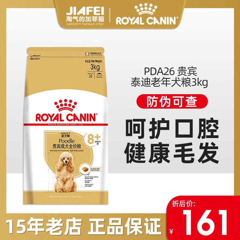 皇家狗粮泰迪专用老年犬PDA26/3/6KG贵宾小型犬主粮8岁+高龄犬粮