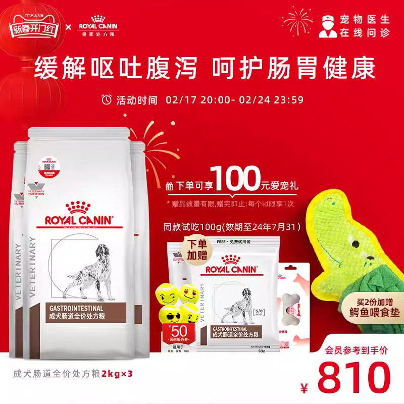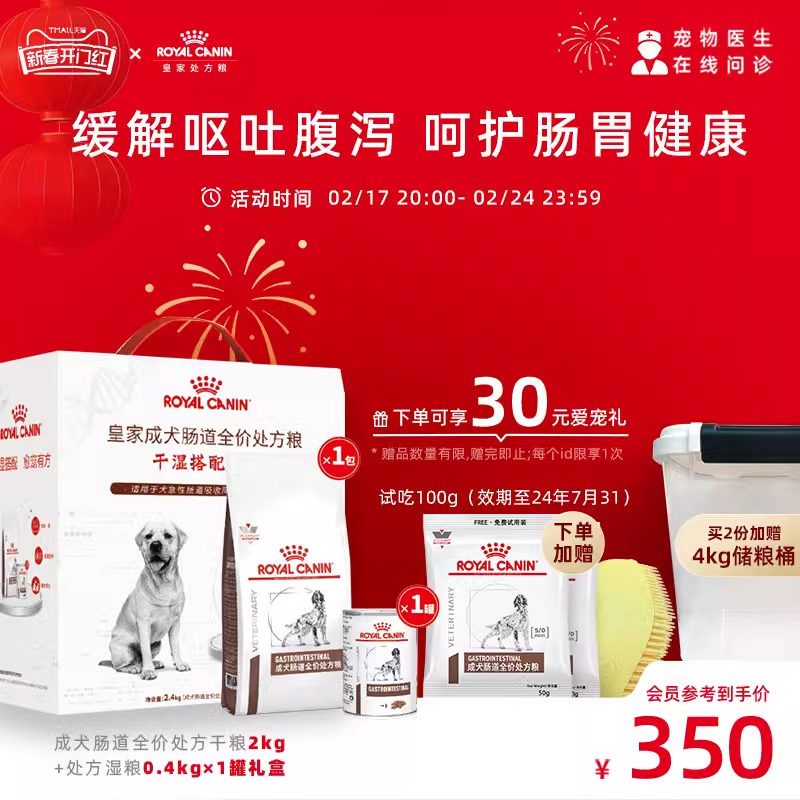 【顺丰发货】皇家狗粮GI25肠道处方粮2kg湿粮VGLC干湿搭配组合