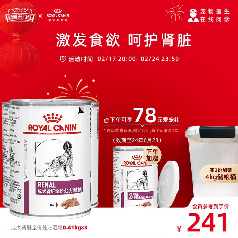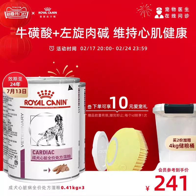 皇家狗粮心脏处方湿粮VCDC慕斯肉泥410g*3罐 效期至24年7月13