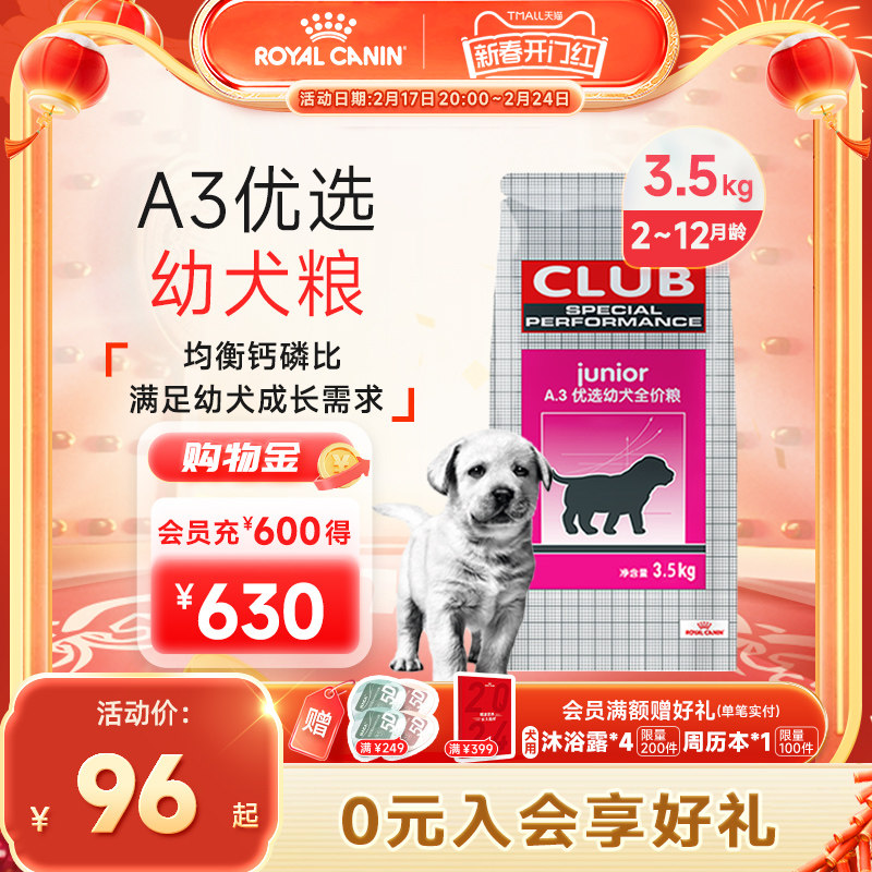 皇家狗粮幼犬狗粮A3奶糕3.5kg宠物狗泰迪贵宾比熊法斗柴犬幼犬粮
