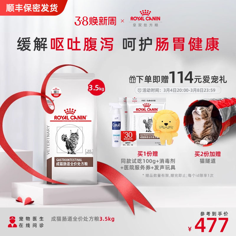 现货皇家成猫肠道猫粮全价处方粮GI32软便拉稀腹泻调肠胃炎3.5kg