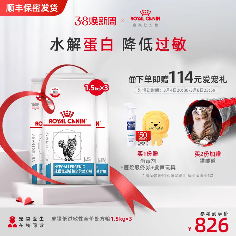 皇家猫低过敏性处方粮DR25低敏猫粮1.5kg过敏体质敏感幼猫成猫粮