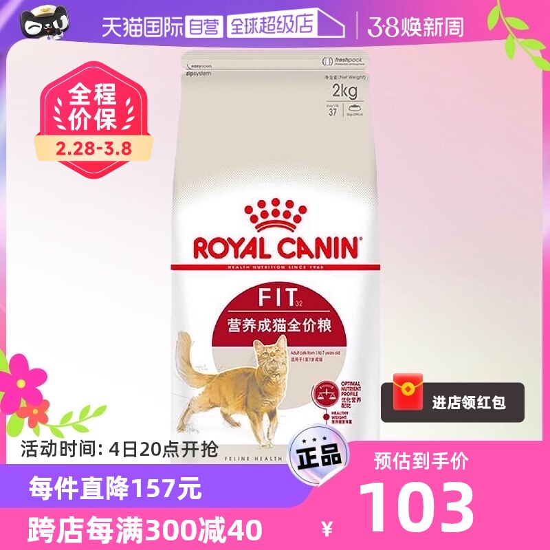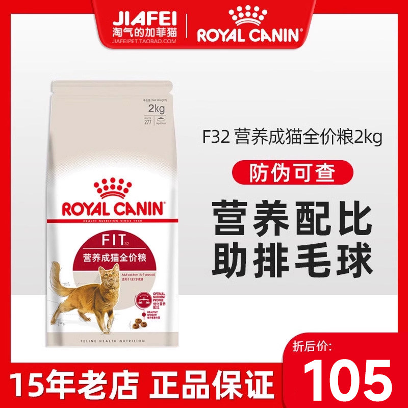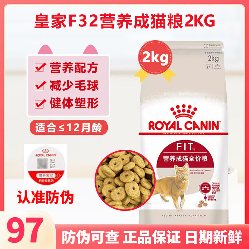 皇家猫粮2kg通用成猫粮F32营养英短美短授权旗舰店全价成猫主粮