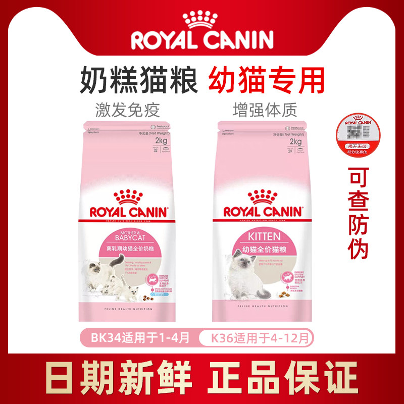皇家猫粮K36/BK34幼猫奶糕专用小猫母猫孕猫离乳期幼猫通用全价粮