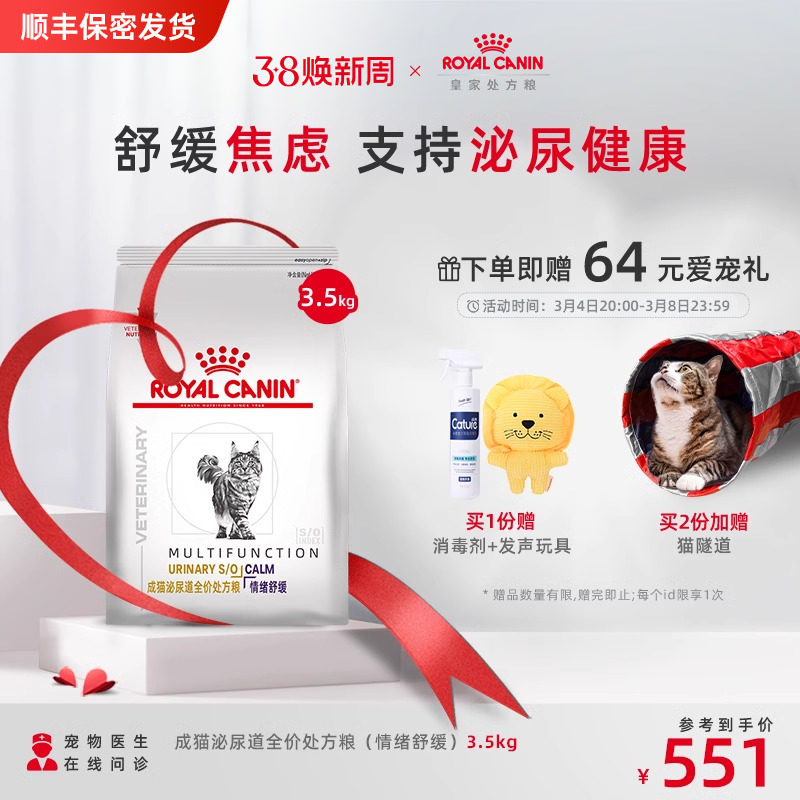 【顺丰发货】皇家猫粮MUC34猫泌尿道处方粮情绪舒缓3.5kg呵护泌尿