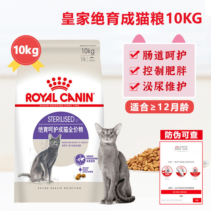 [猫倌]皇家SA37绝育成猫粮10kg呵护胃肠泌尿道宠物全价营养主干粮
