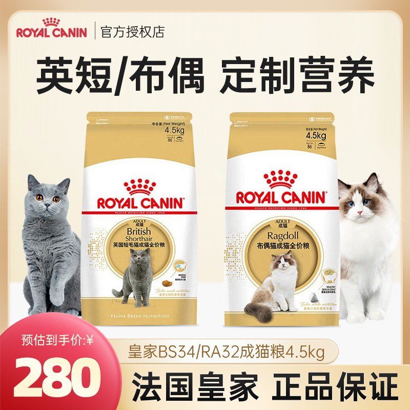 皇家RA32布偶猫粮BS34英短蓝成猫粮2/4.5kg专用成猫粮美毛实惠装