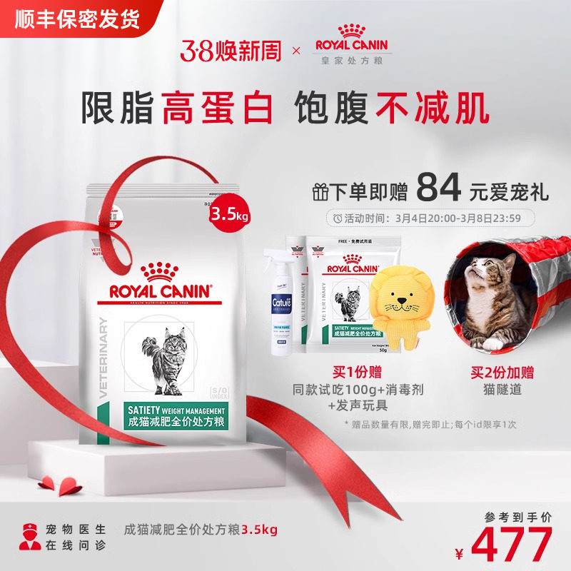 皇家猫粮SAT34 降低血脂控制体重减肥营养均衡1.5KG猫减肥处方粮