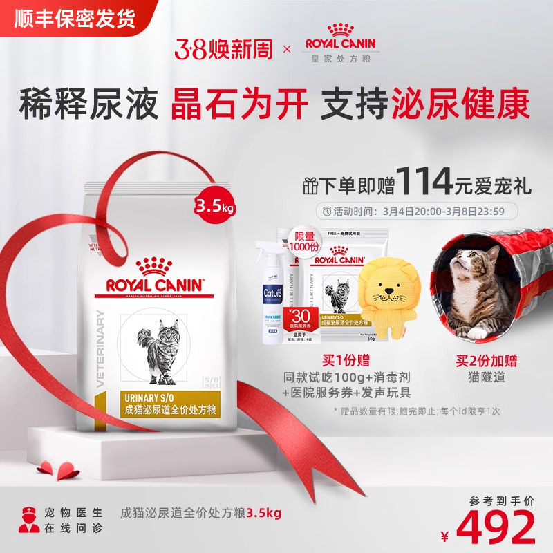 【顺丰包邮】皇家成猫泌尿道处方粮LP34猫粮3.5KG猫咪泌尿系统