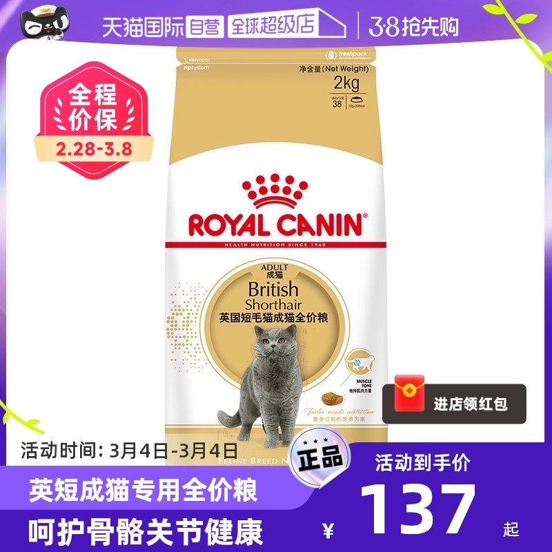 皇家猫粮BS34蓝猫专用猫粮 英短美短成猫通用全价2kg旗舰店实惠装