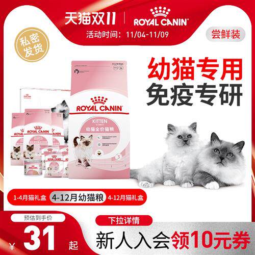 皇家猫粮通用幼猫粮礼盒奶糕bk34/k36英短美短布偶幼猫粮试吃专用