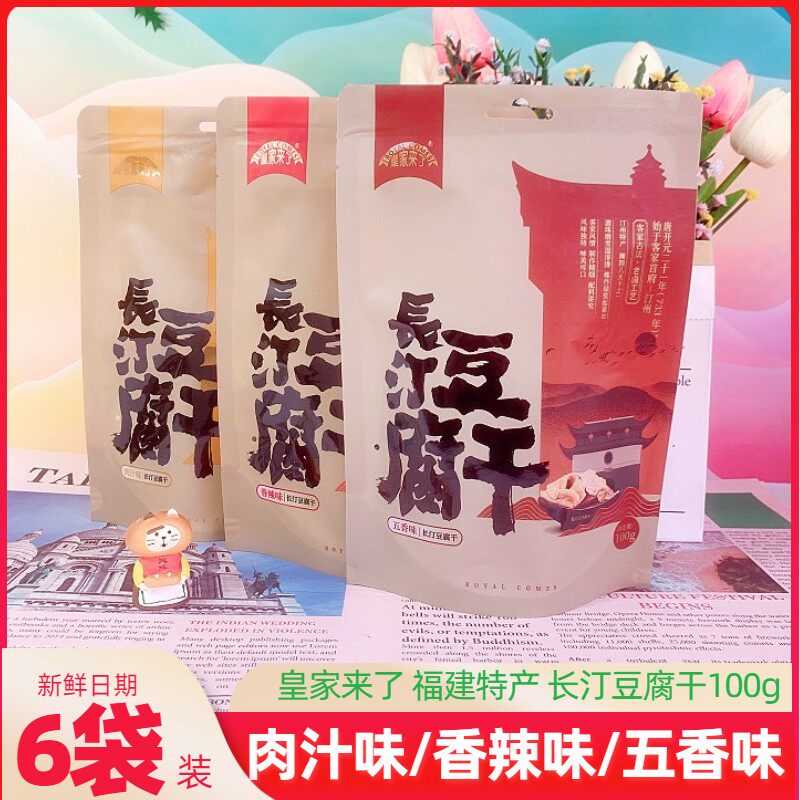 皇家来了长汀豆腐干100g*6袋五香肉汁香辣味豆干独立包装休闲零食