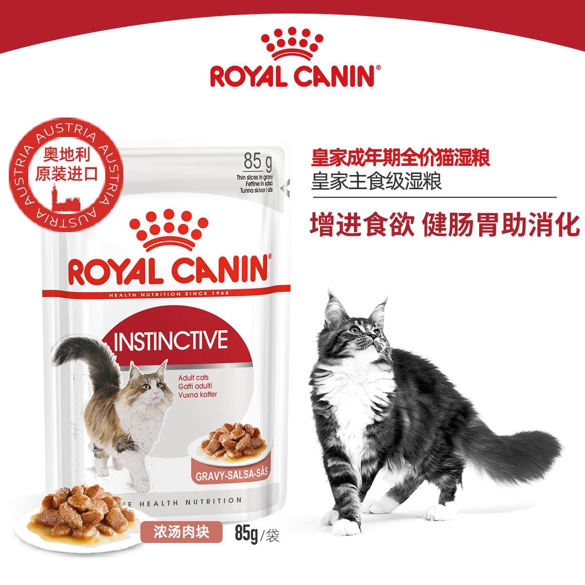 皇家成年期全价猫湿粮85g*12进口啫喱肉冻慕斯浓汤肉块泥主零食包