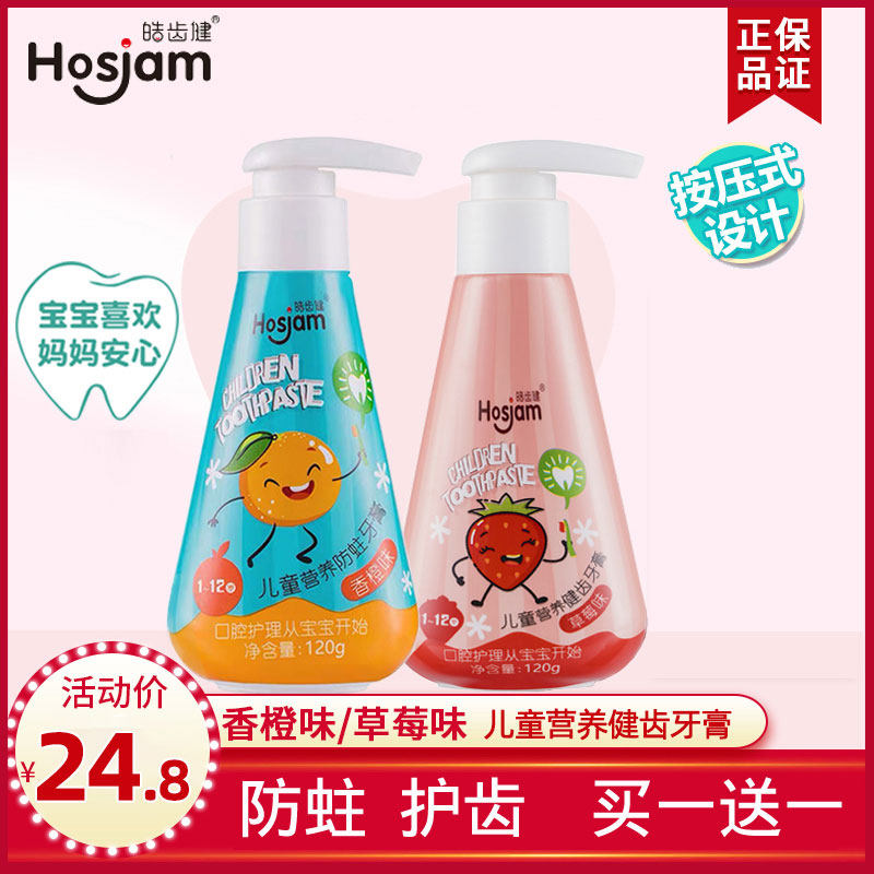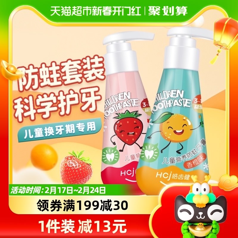 皓齿健按压儿童牙膏换牙期含氟防蛀固齿防龋齿3—6—12岁儿童宝宝