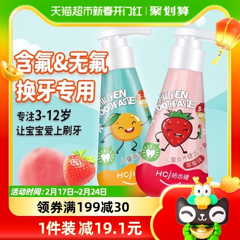 皓齿健儿童牙膏按压氟防蛀固齿3—6—12岁防龋齿换牙宝宝儿童牙膏