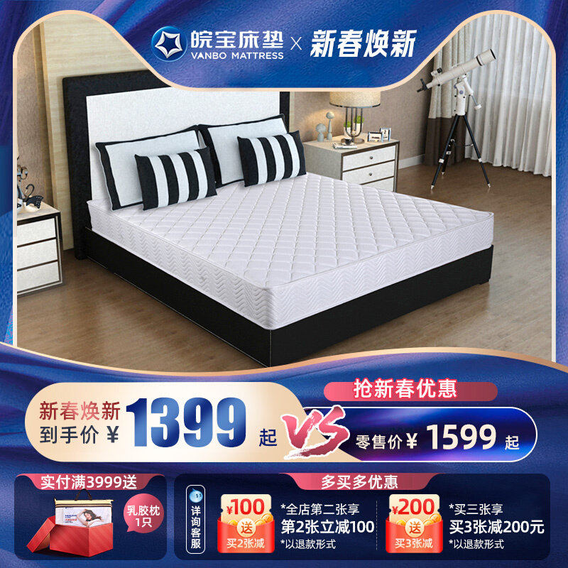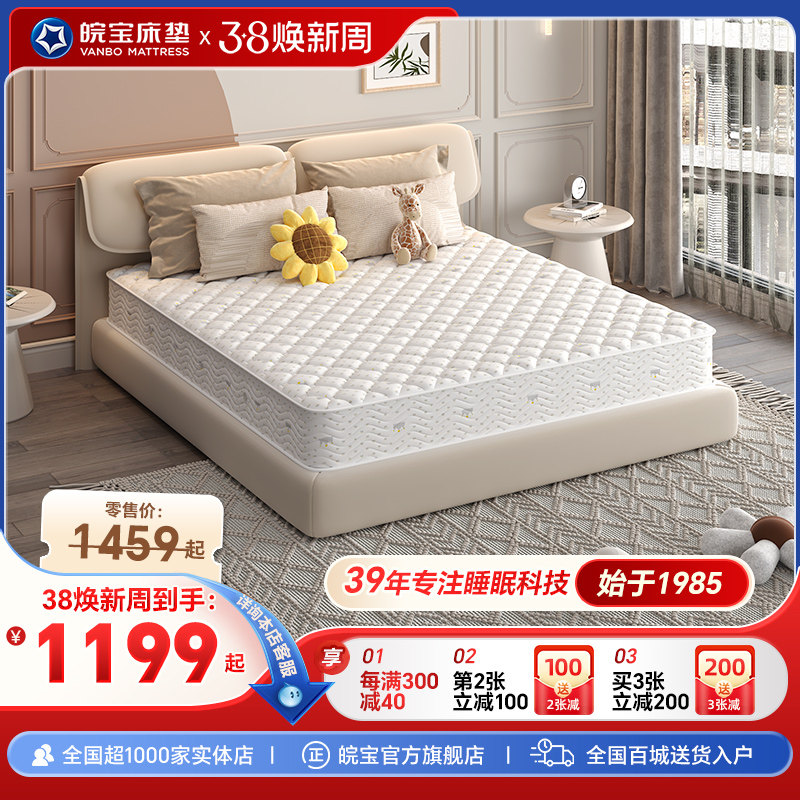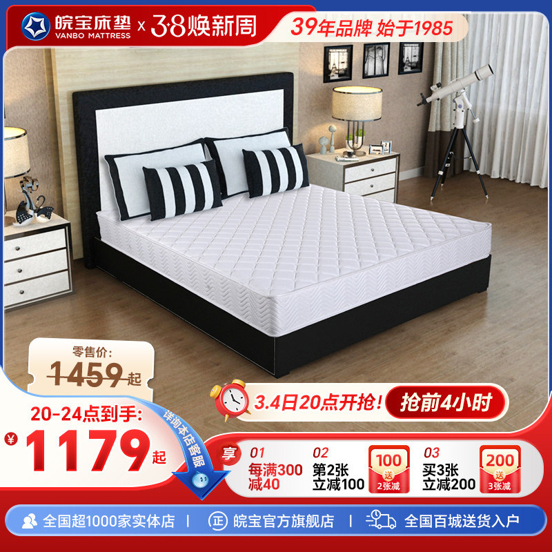 皖宝床垫席梦思乳胶椰棕床垫硬垫软硬两用独立弹簧床垫正品