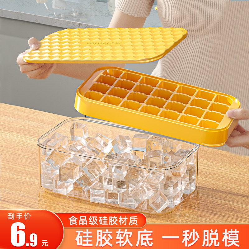 按压冰块模具冰格制冰盒带盖食品级冻冰块模型自制冰箱冻冰块神器