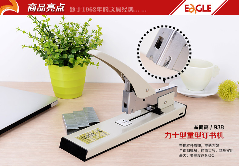 益而高重型订书机938装钉机力士型大号加厚办公订书器财务装订文