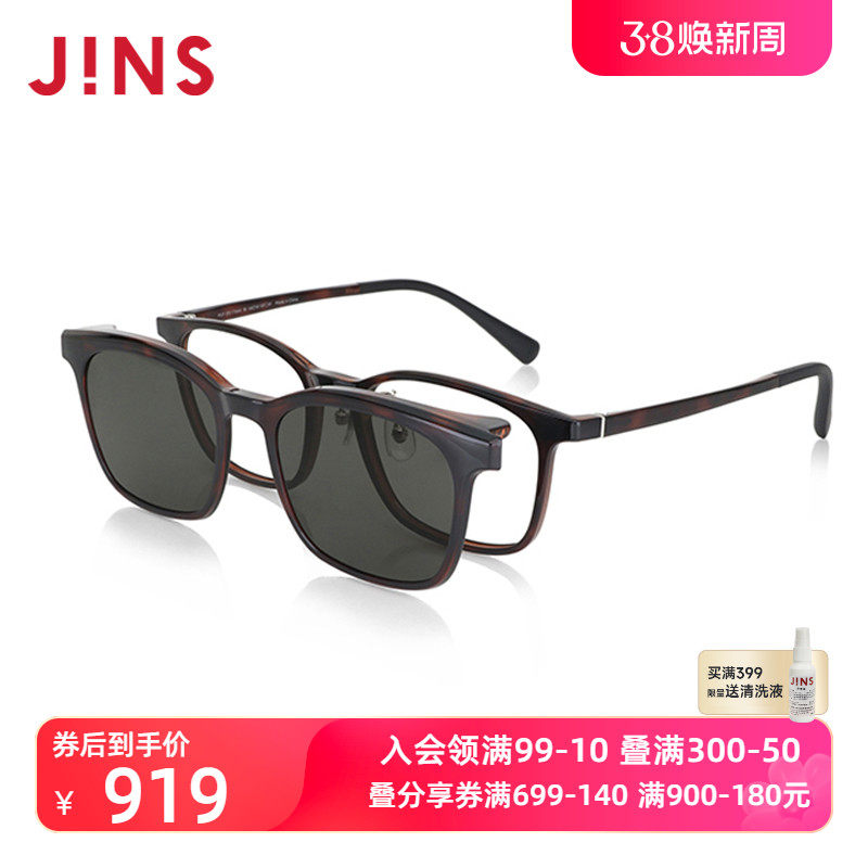 JINS睛姿贴片近视镜磁吸式防紫外线太阳镜大框复古墨镜MUF23S176
