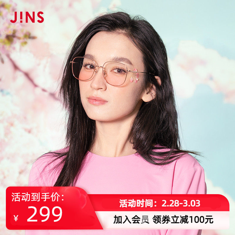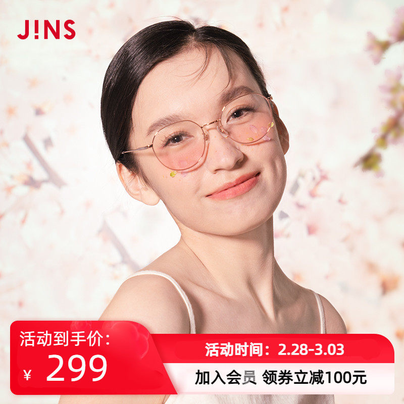 JINS睛姿清新甜美腮红眼镜平光镜金属框配腮红美颜镜片LMF22S147