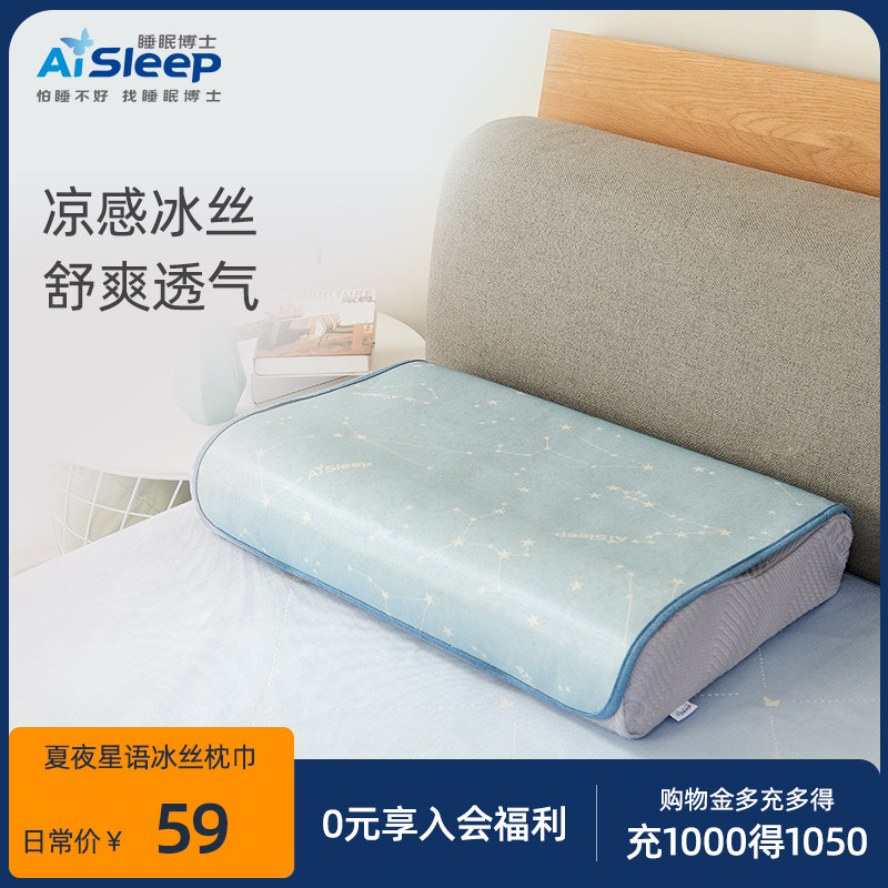 AiSleep/睡眠博士夏季凉爽冰丝枕头套水洗家用宿舍学生单人枕巾