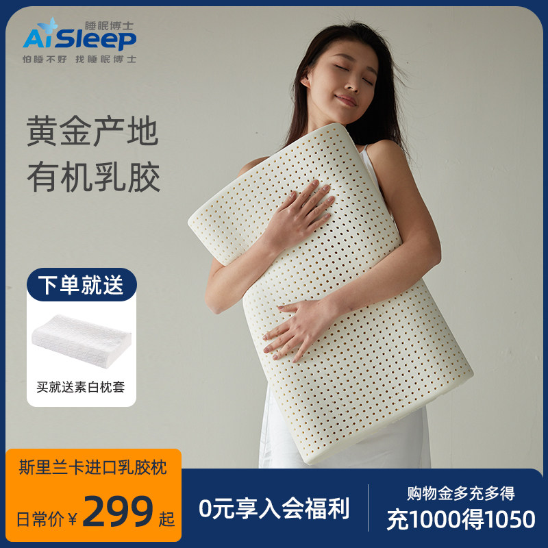 AiSleep/睡眠博士泰国乳胶枕头成人枕按摩护颈枕头乳胶枕单个装