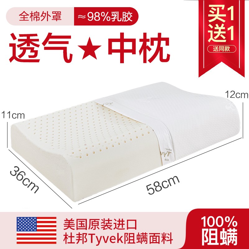 天然乳胶枕头泰国进口家用橡胶枕头助睡眠防透气螨睡眠博士