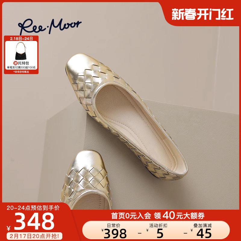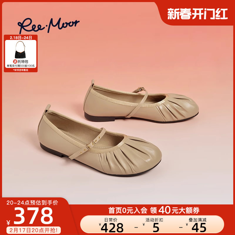 REEMOOR睿慕2024春季新款小羊皮温柔晚晚风舒适软底平底单鞋女
