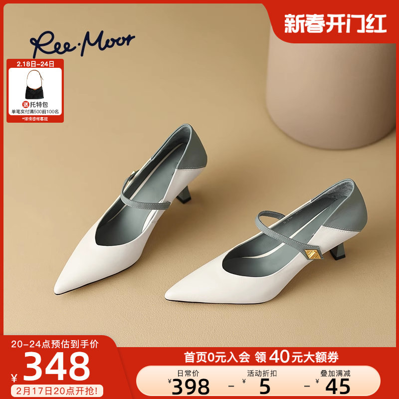 REEMOOR睿慕2024年春夏新款时尚尖头玛丽珍鞋一字带扣低跟单鞋女
