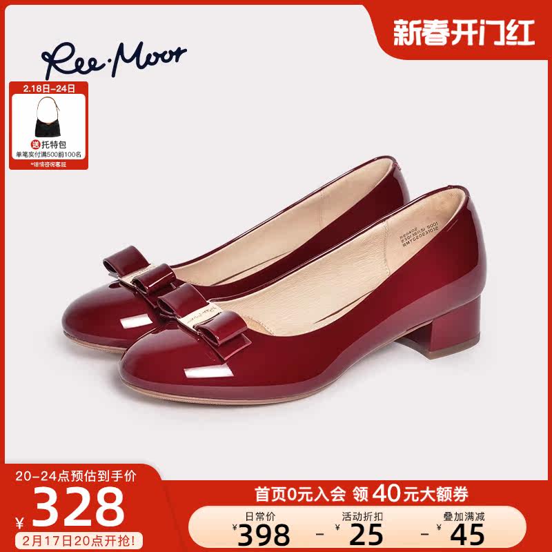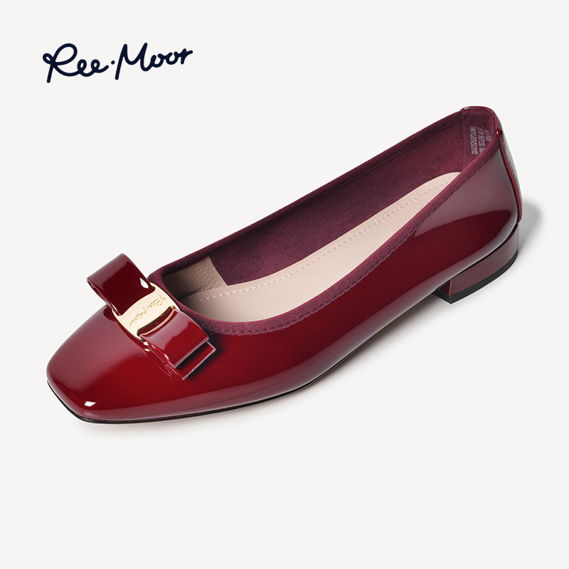 REEMOOR睿慕2024年春季新款软底漆皮单鞋舒适气质跟鞋方扣婚鞋女