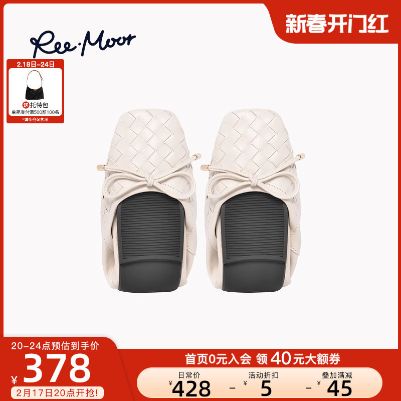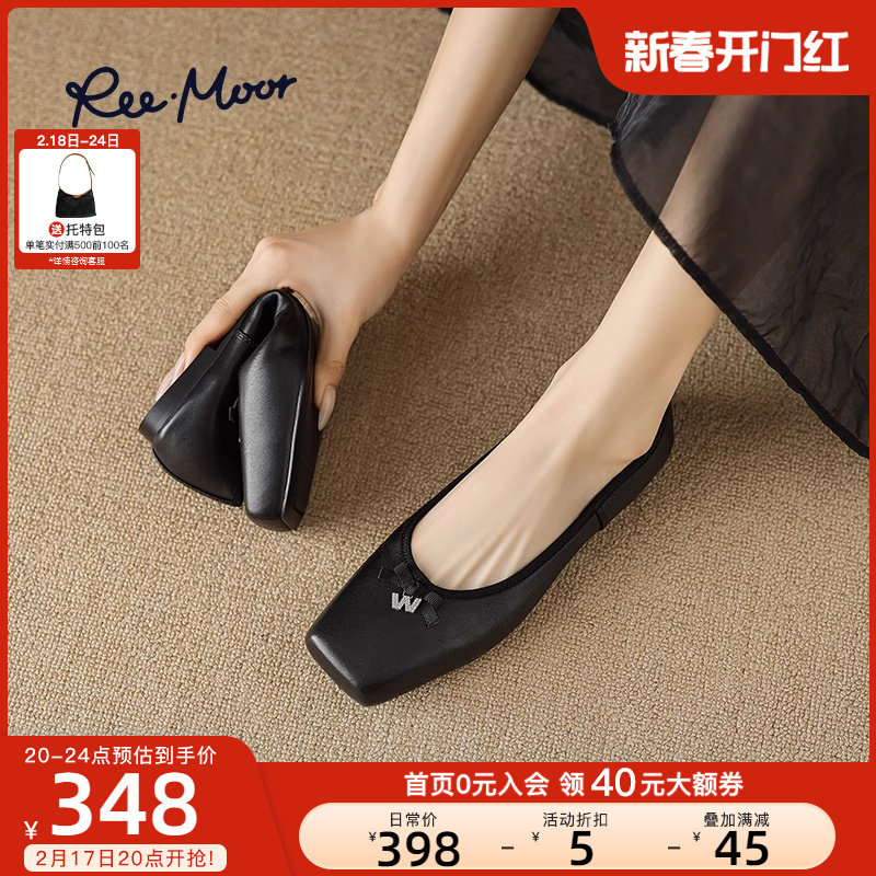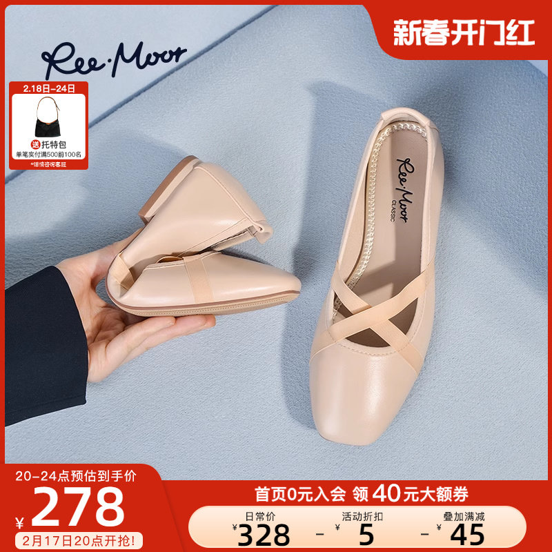REEMOOR睿慕交叉绑带浅口低跟方头平底芭蕾舞鞋软底通勤百搭单鞋