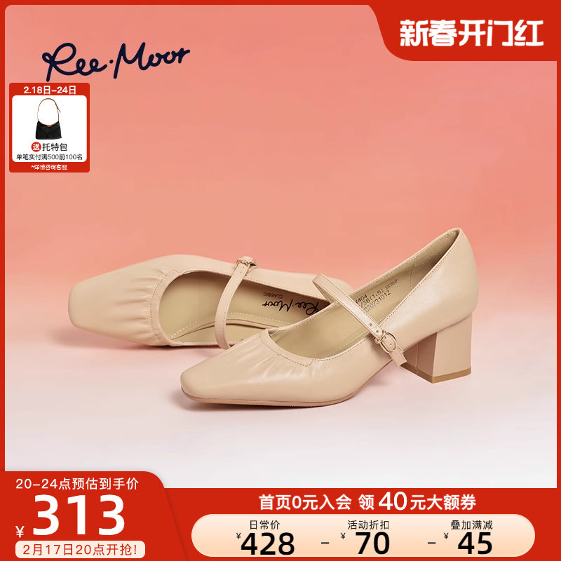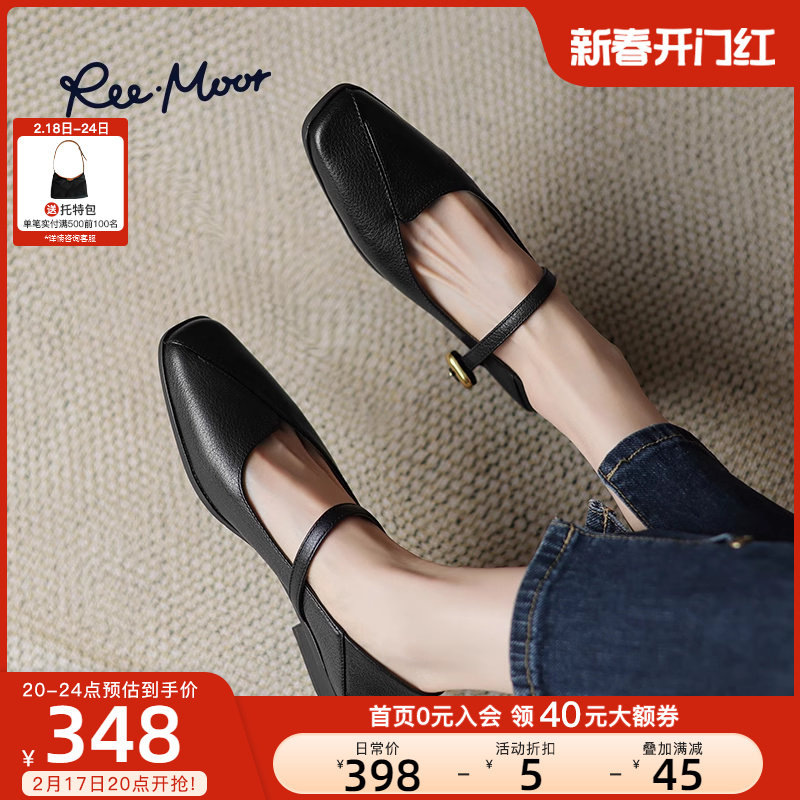 REEMOOR睿慕2024年春夏新款法式玛丽珍鞋方头气质粗跟浅口单鞋女