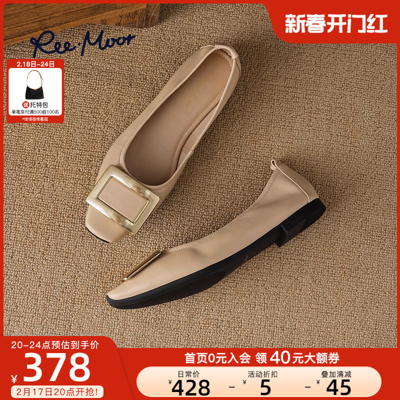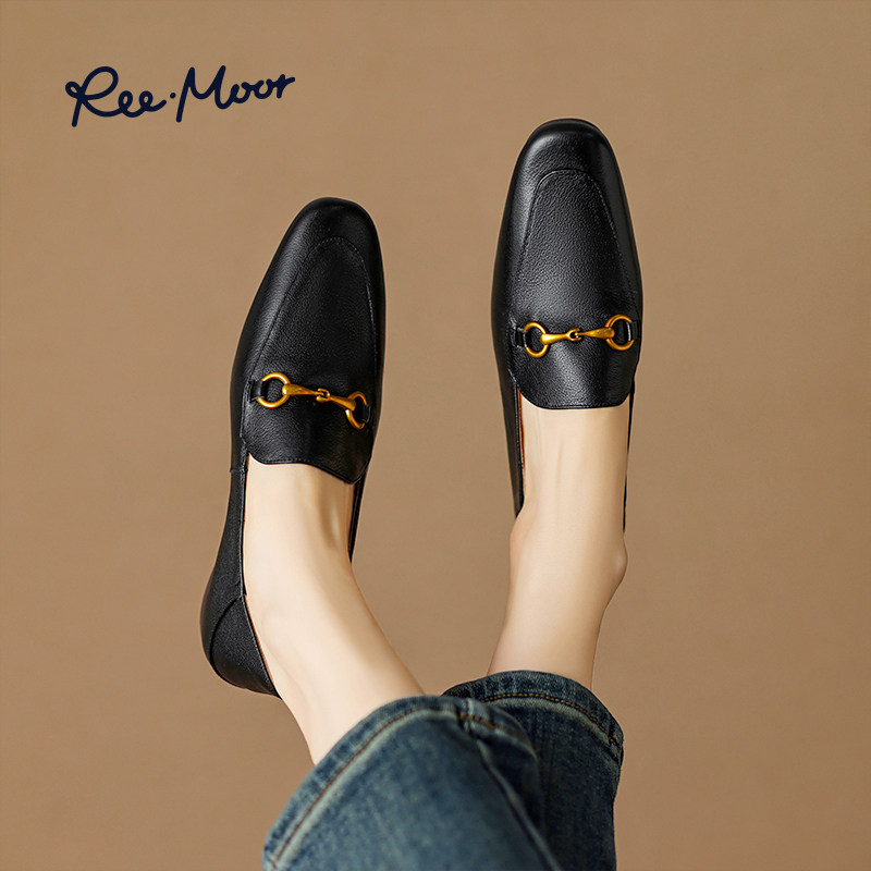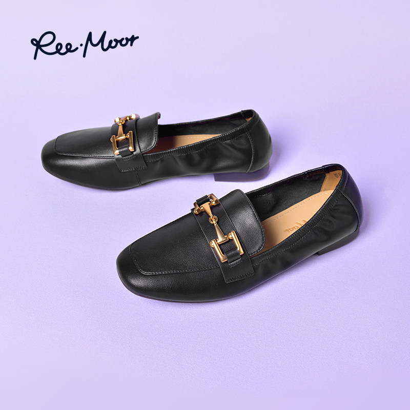 REEMOOR睿慕24年春新款超软羊皮蛋卷鞋通勤方扣浅口单鞋平底鞋女