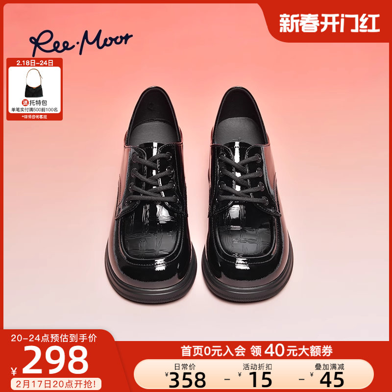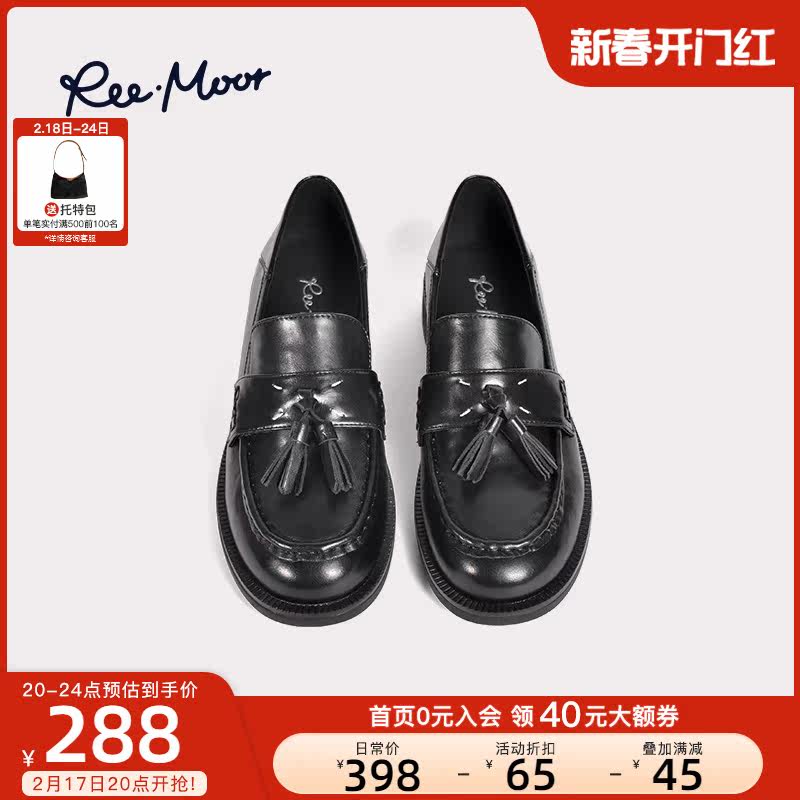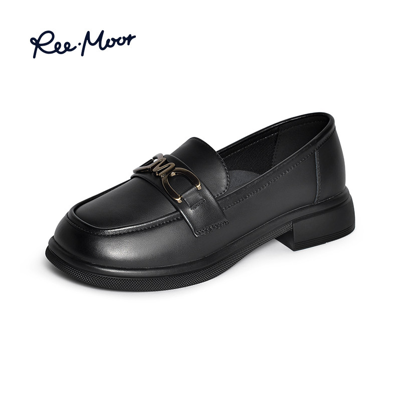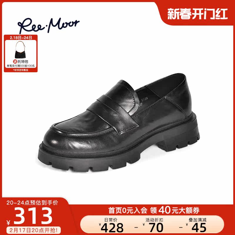 REEMOOR睿慕23秋新商场同款厚底乐福鞋黑色女英伦风小皮鞋单鞋