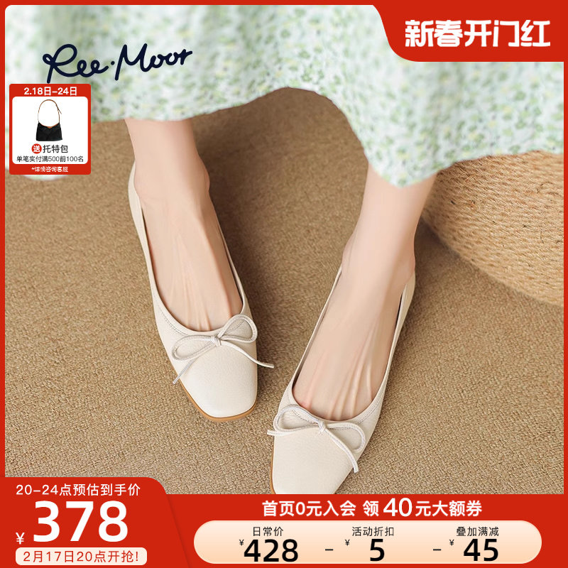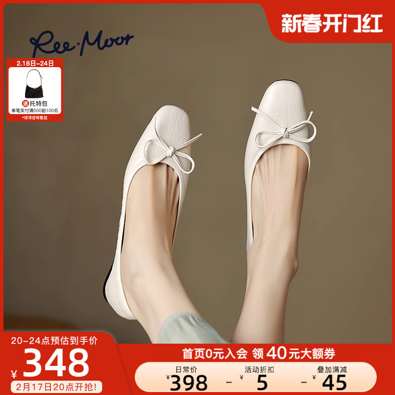 REEMOOR睿慕2024年春新款舒适平底鞋真皮浅口单鞋蝴蝶结蛋卷鞋女