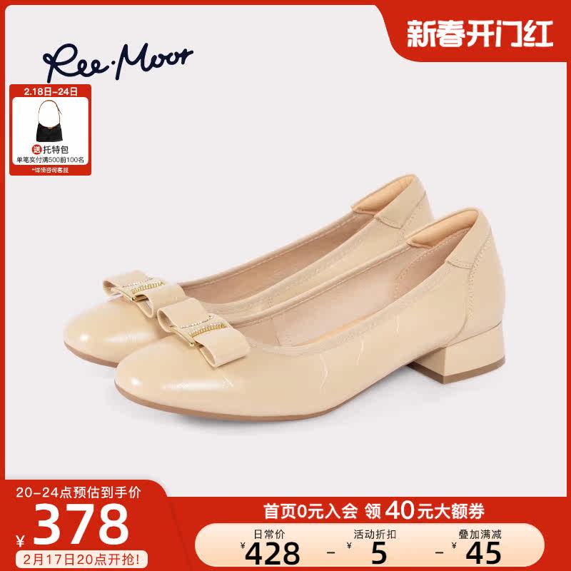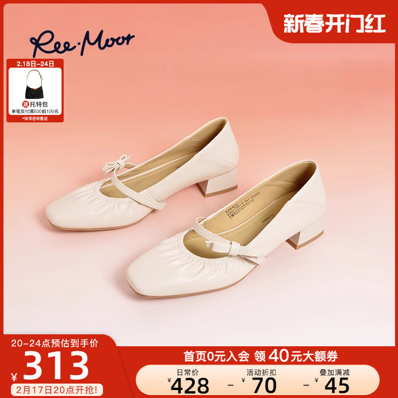 REEMOOR睿慕2024年春新款蝴蝶结玛丽珍鞋法式气质高跟鞋粗跟单鞋
