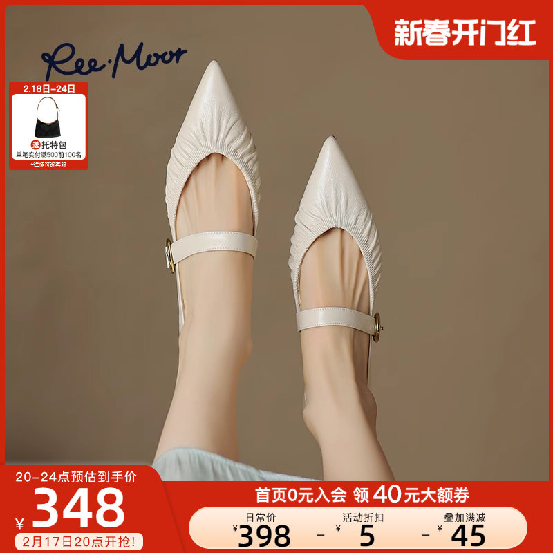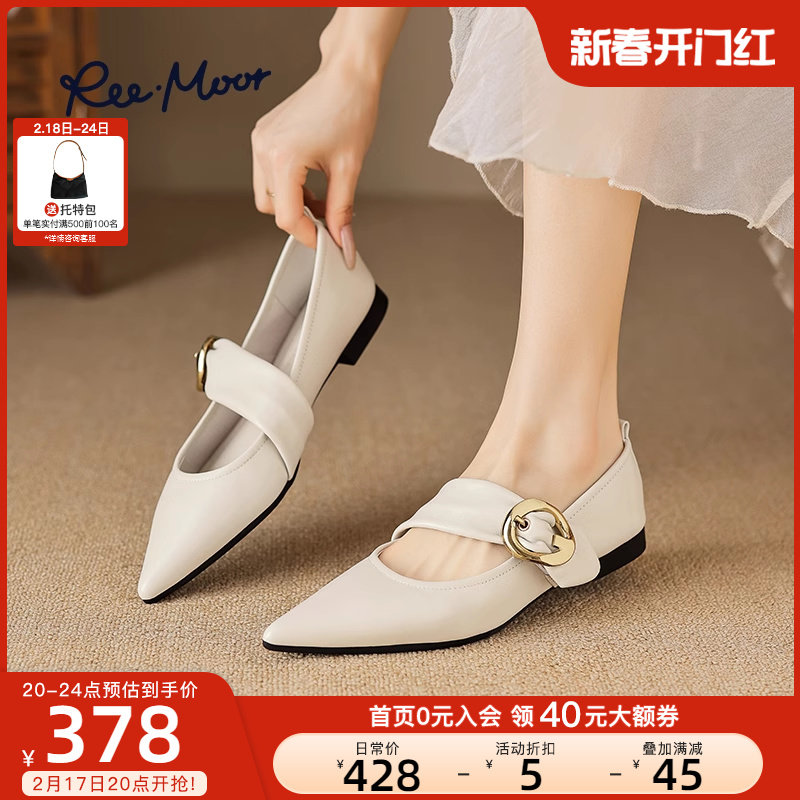 REEMOOR睿慕2024春新款超软小羊皮尖头晚风温柔平底玛丽珍单鞋女
