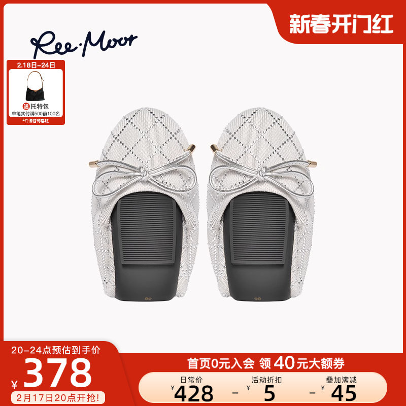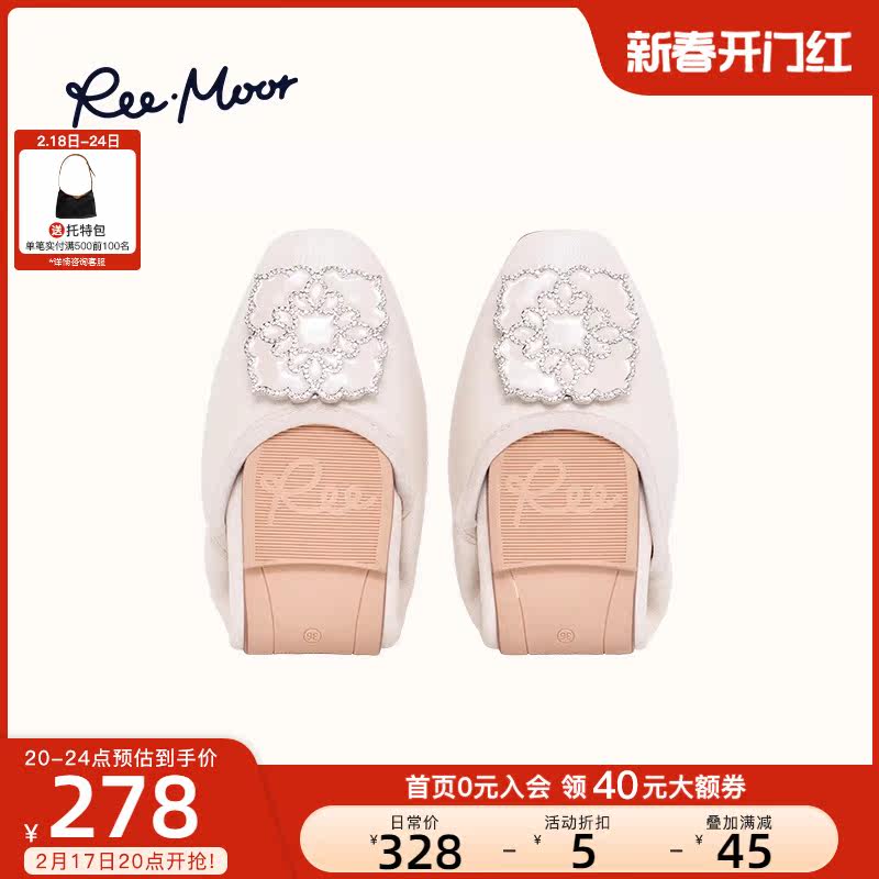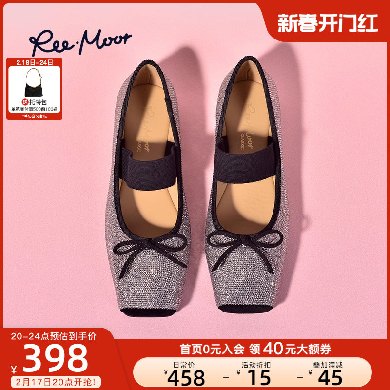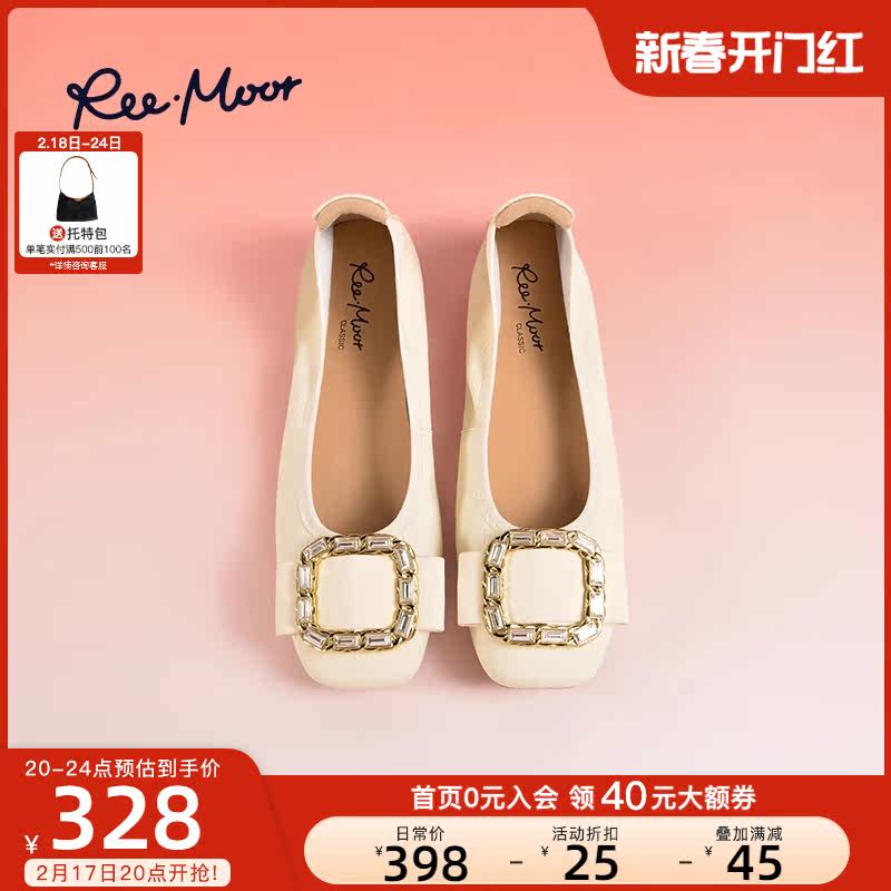 REEMOOR睿慕24年春新款水钻单鞋方头浅口蝴蝶结平底鞋婚鞋船鞋女