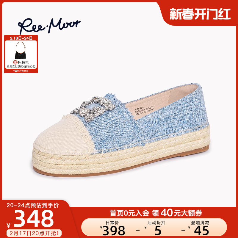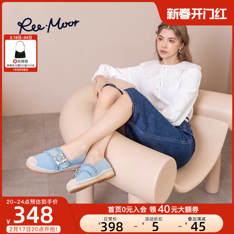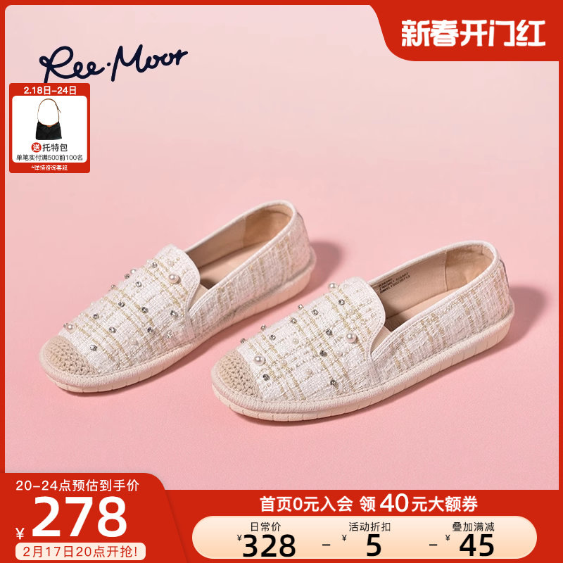 REEMOOR睿慕2024春夏新款小香风渔夫鞋休闲平底鞋一脚蹬女鞋单鞋