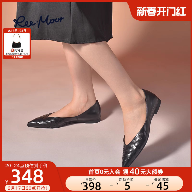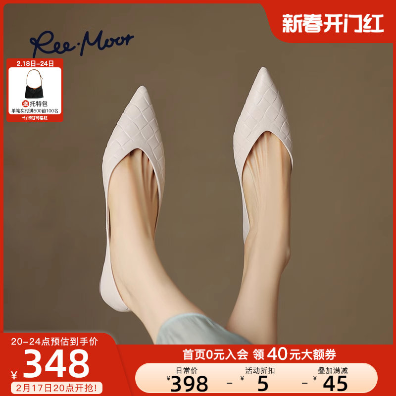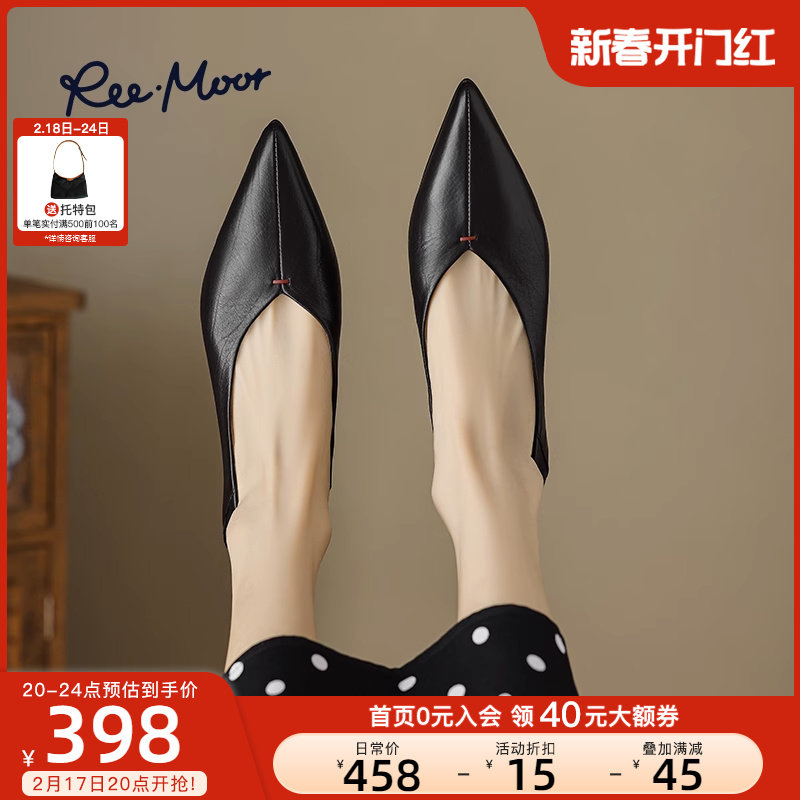 REEMOOR睿慕2024春季新款时尚气质尖头浅口单鞋真皮软底平底鞋女