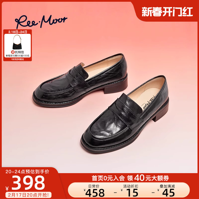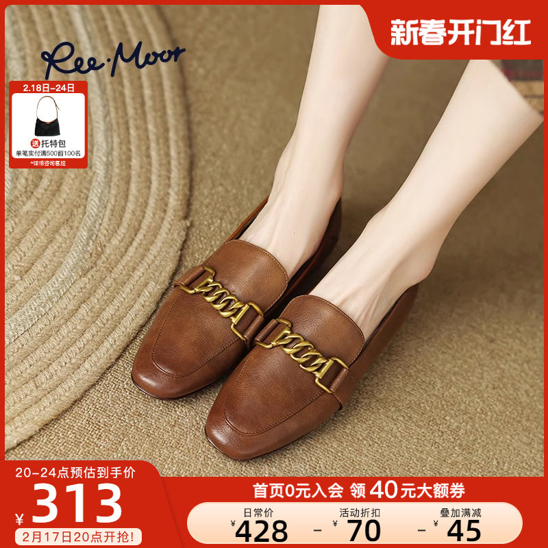 REEMOOR睿慕23秋新款英伦风平底小皮鞋羊皮垫超软乐福鞋单鞋女