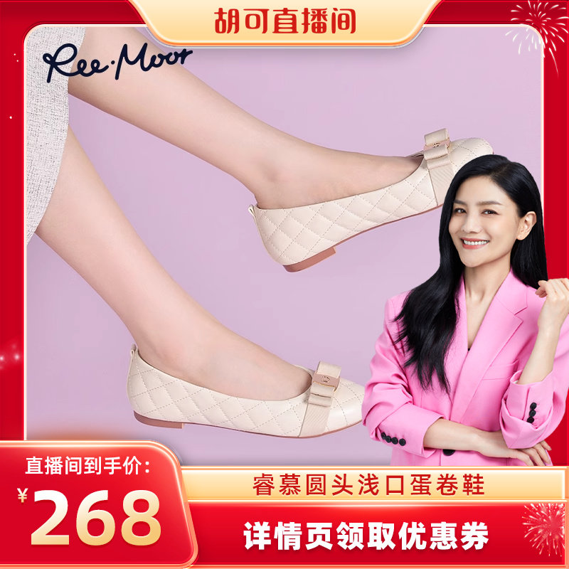 REEMOOR睿慕2024春季新款浅口平底鞋蝴蝶结蛋卷鞋软底单鞋女鞋